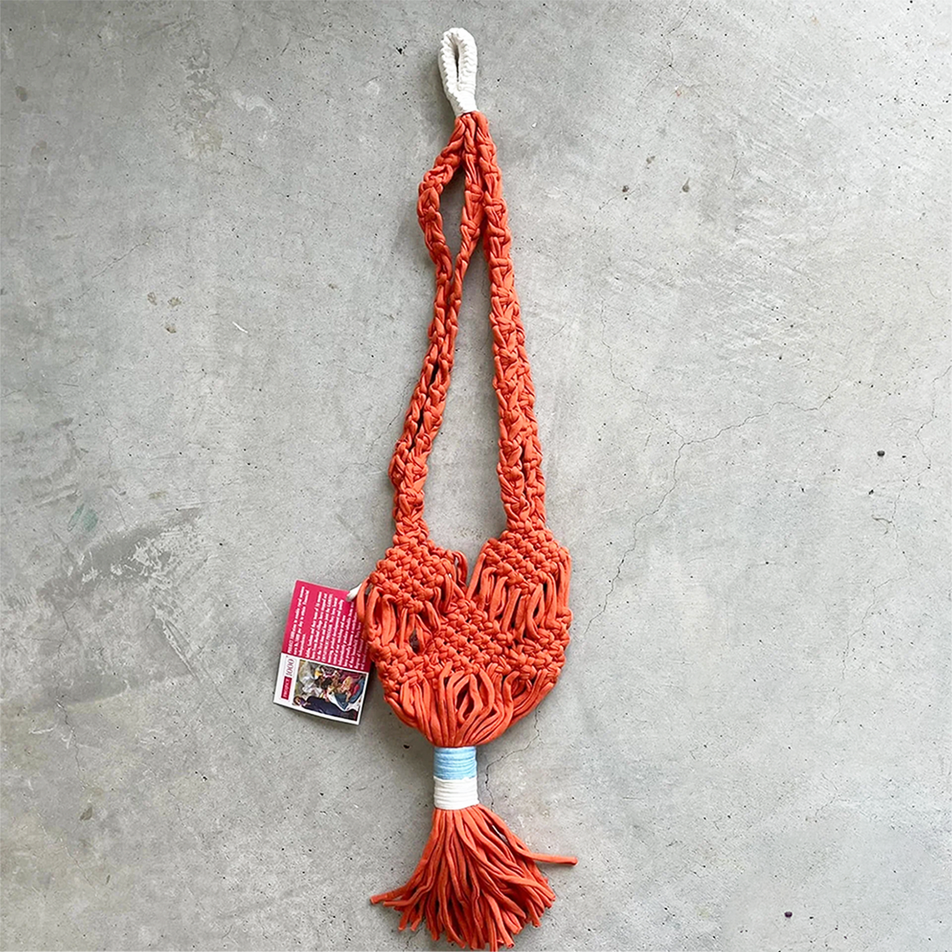 The products are all handmade by people who have acquired product knowledge, design, technology, and quality control know-how.Local women knit each piece using traditional methods using the edges of fabric that had been discarded at Indian textile factories.
