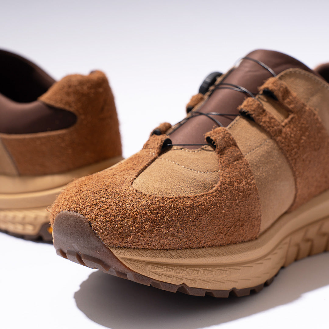 Furthermore, the outsole incorporates Vibram's midsole technology “VARANASI.” Combining two layers of EVA with different hardness levels achieves both lightness and ease of walking.